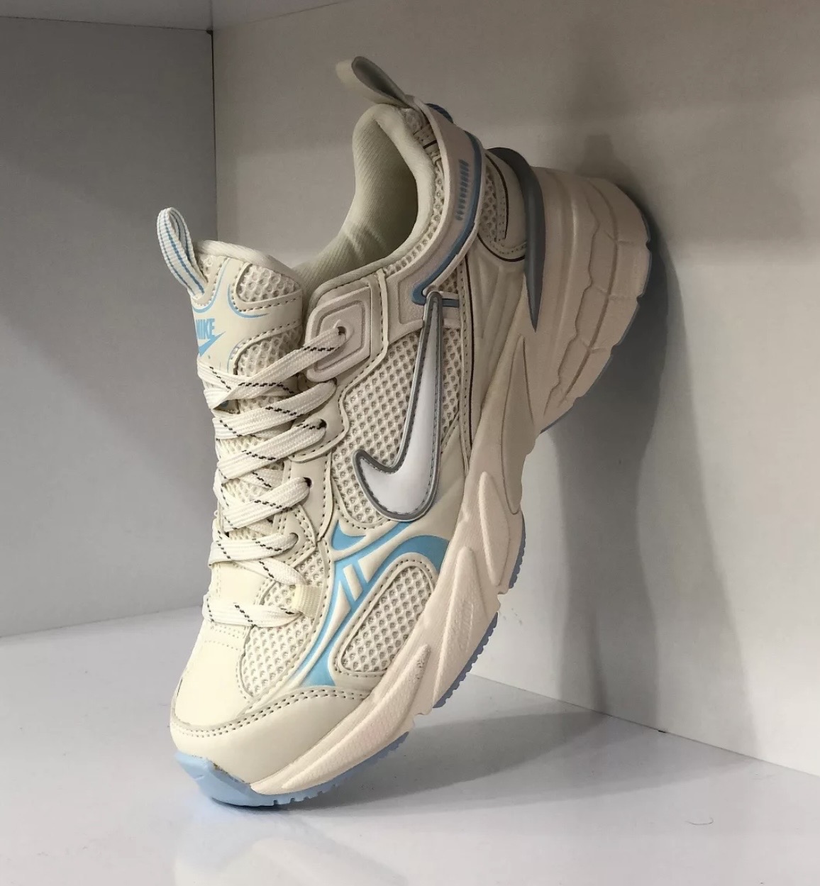 کتونی نایک وی تو کی ران پلاس سفید / کرم / آبی