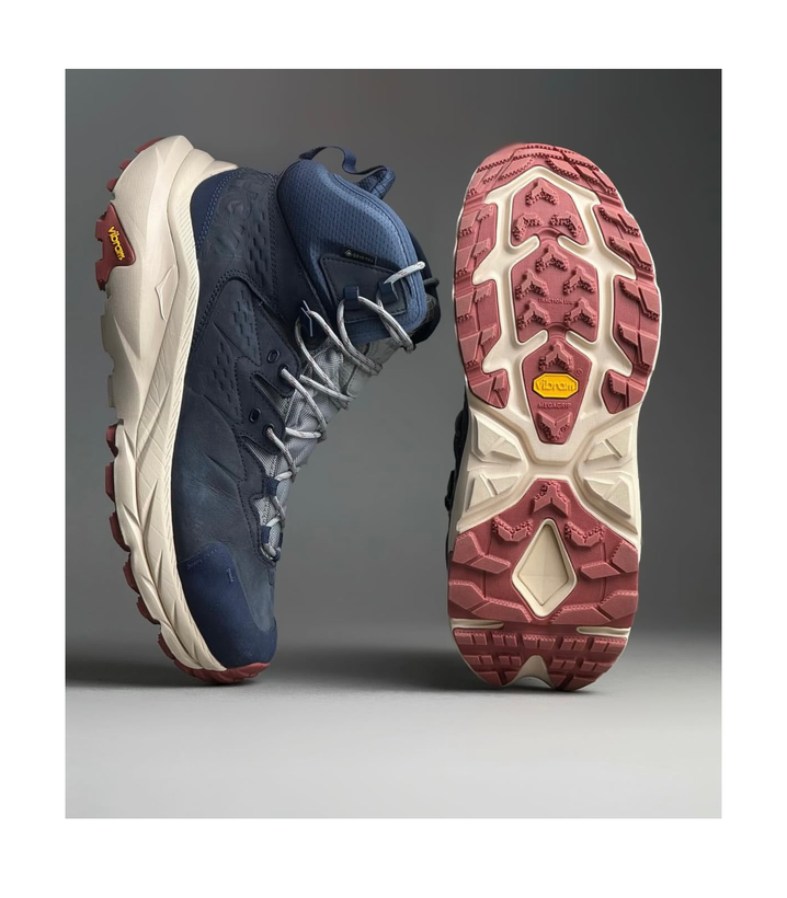 هوکا کاها ۲ ساقدار از همان لحظهی اول نشان میدهد که برای مسیرهای ساده ساخته نشده. فرم محکم و ارتفاع ساقدار آن، مچ پا را در بر میگیرد و حسی از ثبات و اطمینان میدهد؛ حسی که در مسیرهای طولانی و شیبدار کمکم میفهمی چقدر حیاتی است.